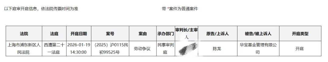 去年12月底,华宝基金还被公司原基金经理陈龙,以劳动争议为由,告上法庭。案件已于今年1月19日开庭,目前尚未有结果。