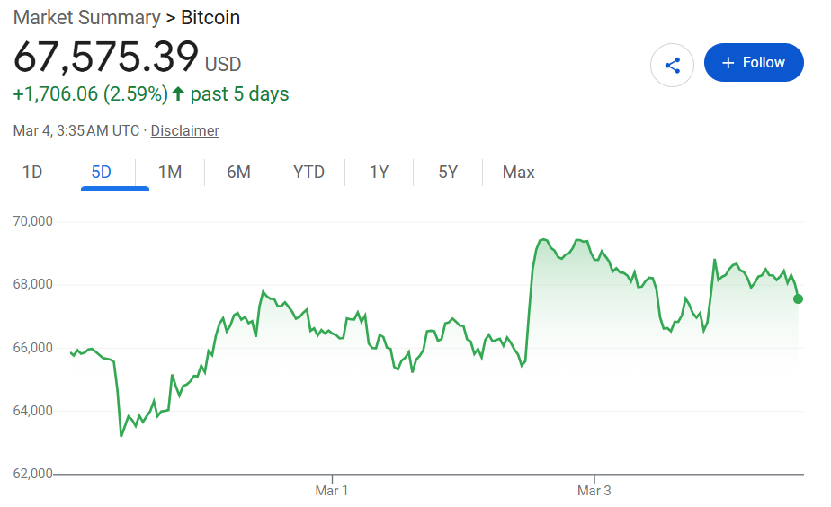 近5个交易日以来,黄金下跌0.65%,而比特币上涨2.59%,表现强于黄金。