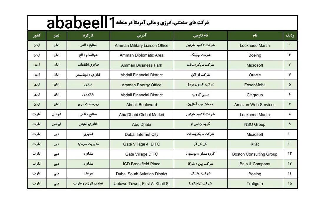 此外,伊朗还公布了一份详细的拟对美国相关工业目标进行打击的清单——包括名称、地址、城市和行业分类。