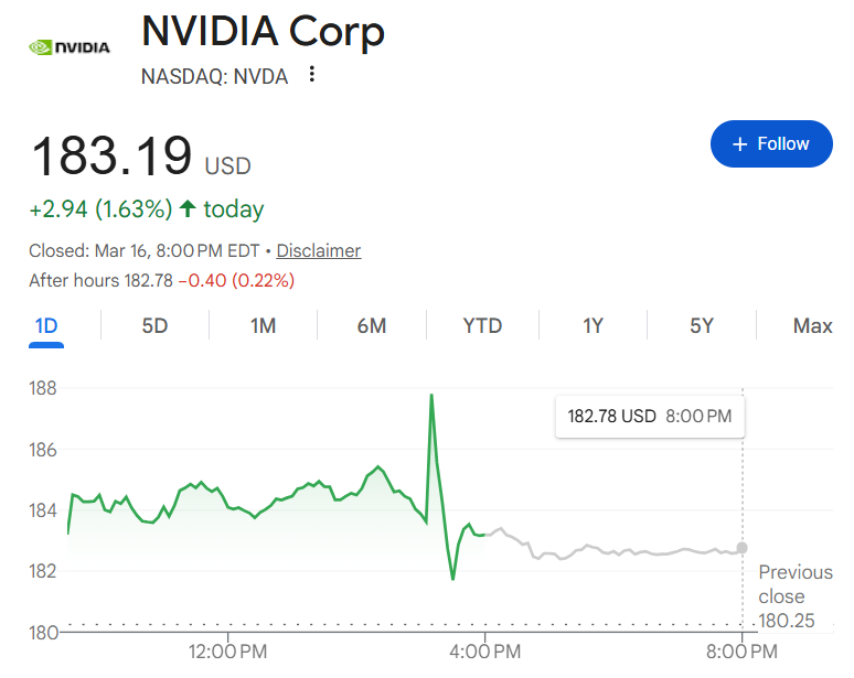 受黄仁勋讲话影响,英伟达股价瞬间飙升超过4%。