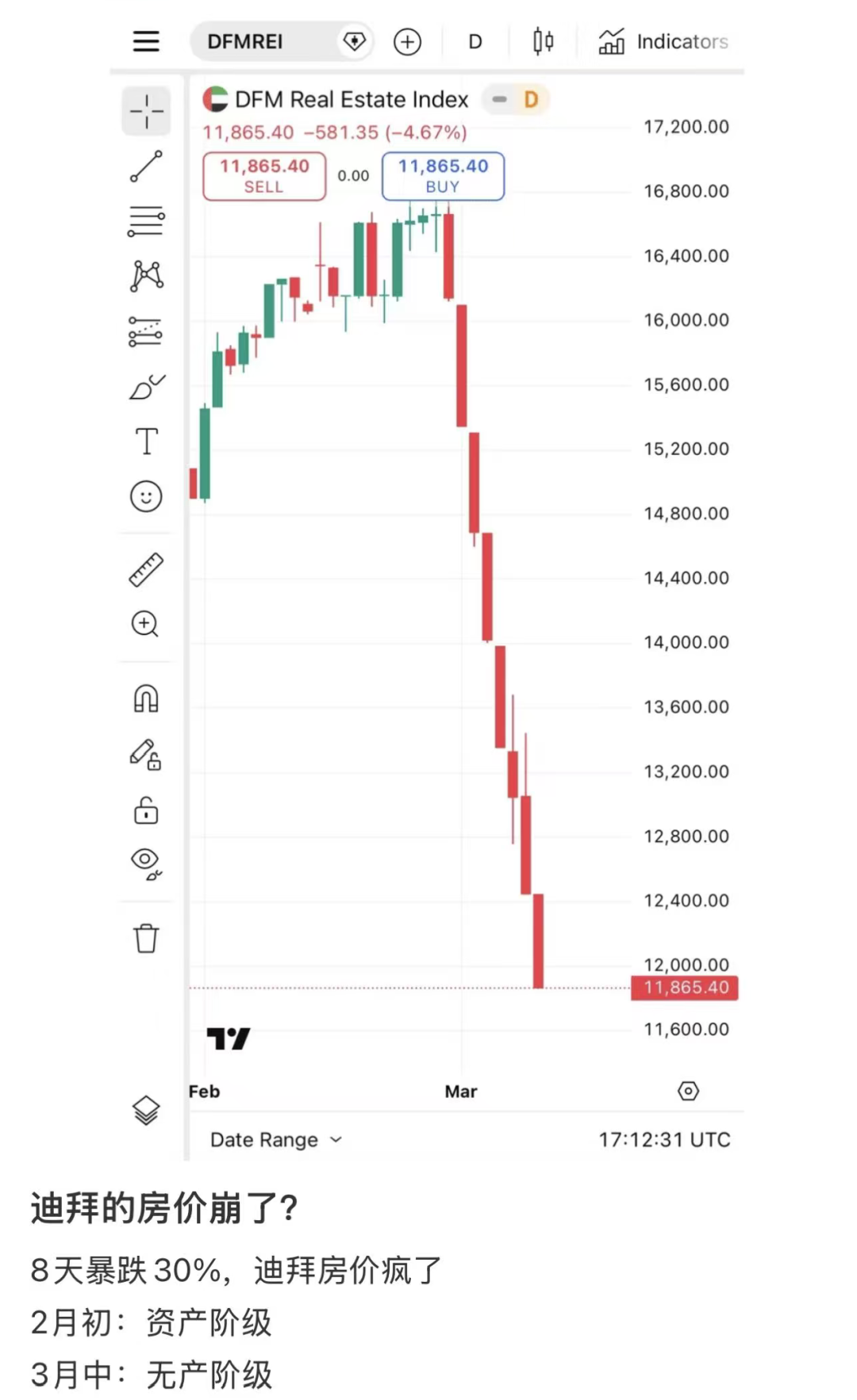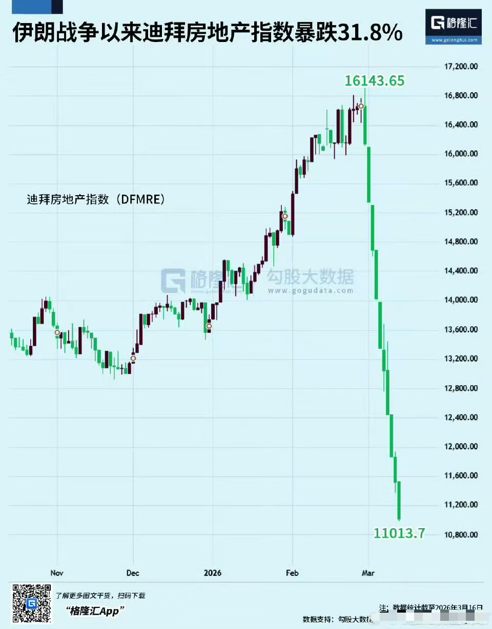 最新数据显示,迪拜房地产指数(DFMRE)已经暴跌31.8%。