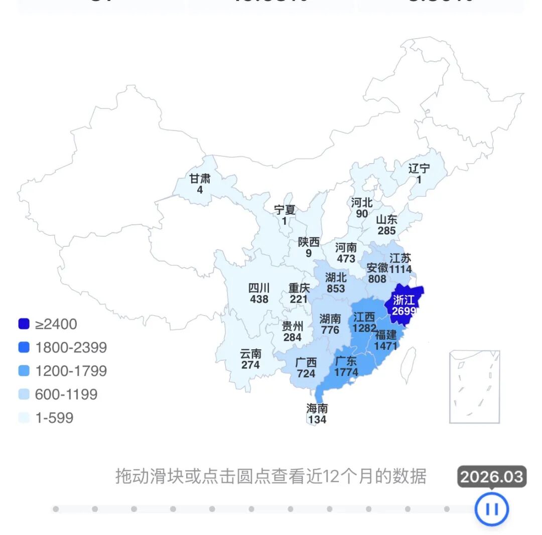 这话不夸张。它把家底几乎都押在了浙江、福建、江西、广东这几个省,光这几个地方,就贡献了全国六成门店。