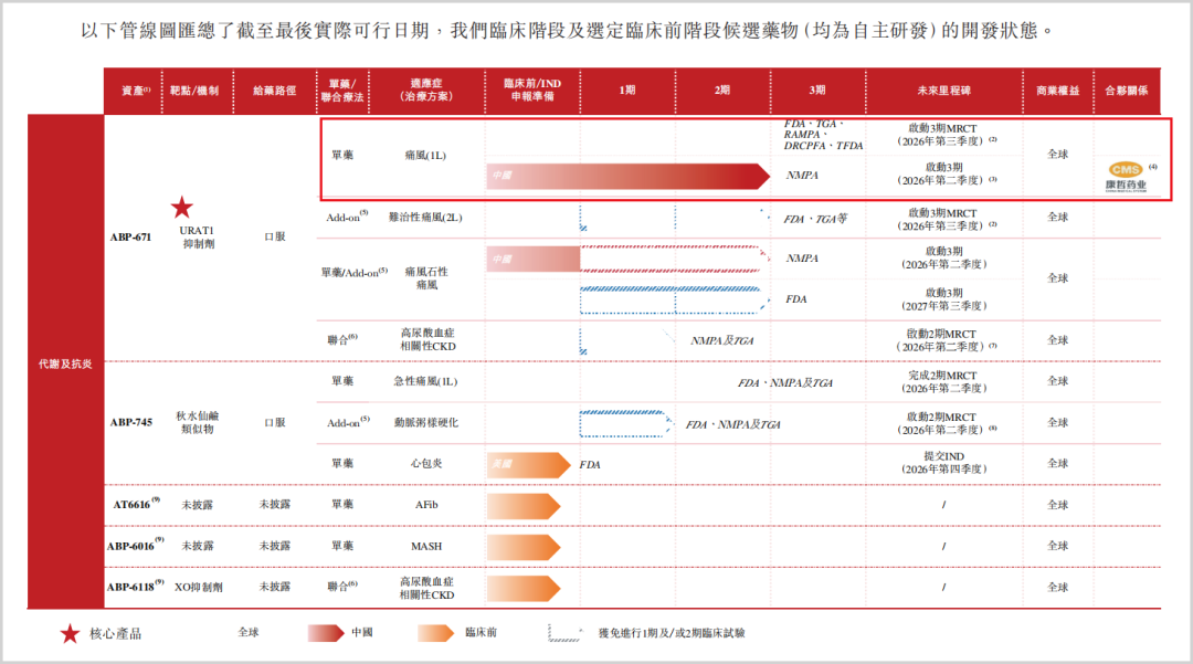 目前,根据弗若斯特沙利文的数据,全球痛风患病人数预计将从2024年的约6620万增长至2033年的9160万,而相应的治疗药物市场规模预计将从27亿美元迅猛扩张至93亿美元,年复合增长率高达14.9%。在中国市场,高尿酸血症患者基数庞大,约2.21亿人,其中痛风患者约2530万人,且诊断率和治疗率仍有巨大提升空间,这为ABP-671未来的商业化提供了庞大的潜在患者群体。