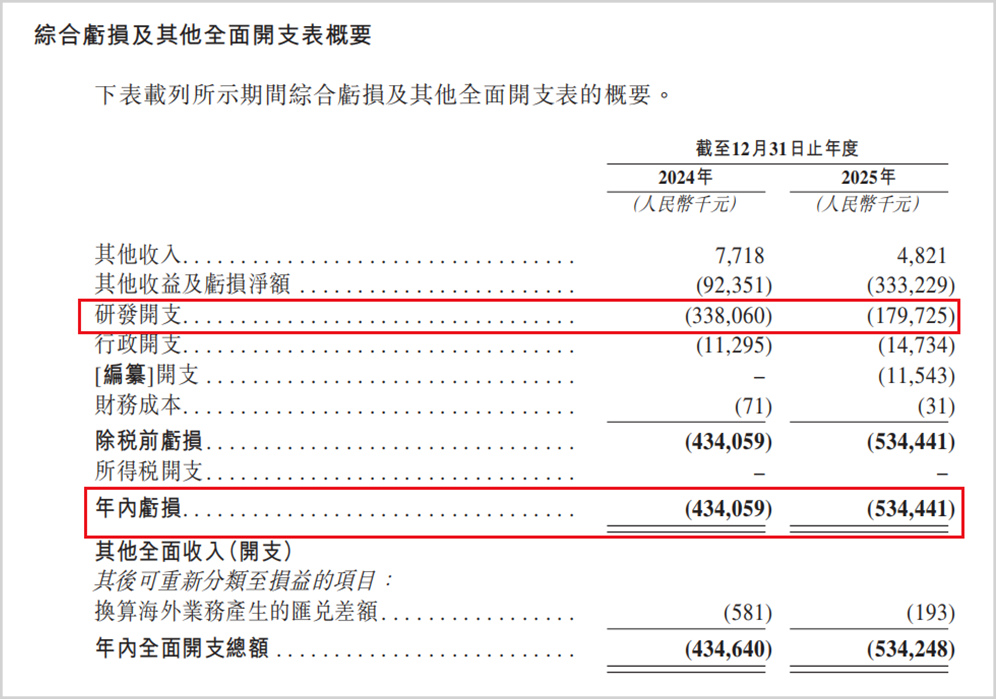 根据招股书,公司2024年净亏损达到4.34亿元,而到了2025年,这一数字进一步攀升至5.34亿元,亏损额同比大幅增加了61.2%。