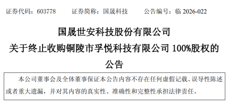彼时,国晟科技称,基于战略规划及业务发展需要,为进一步拓展上市公司业务,寻求新的利润增长点,拟收购铜陵市孚悦科技有限公司100%股权。