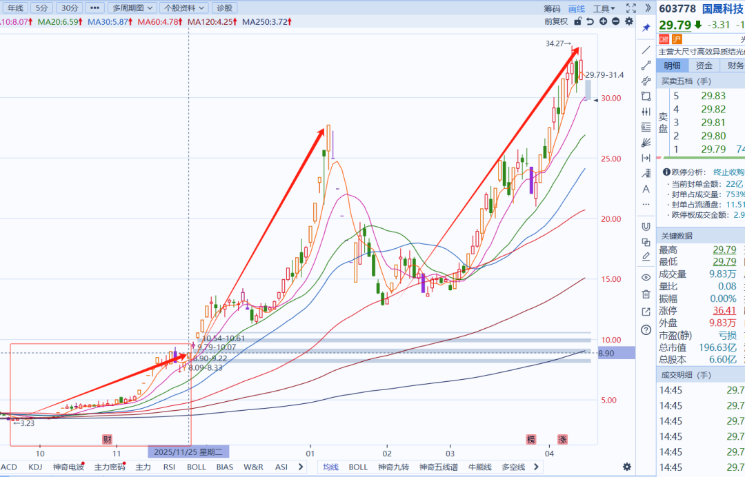 而在这之前,股价已经被市场爆炒。结合股价走势看,去年9月23日,国晟科技股价最低3.23元/股;到昨天,股价最高34.12元/股。算下来,股价最高涨幅达956%,接近10倍,而时间不过短短7个月。