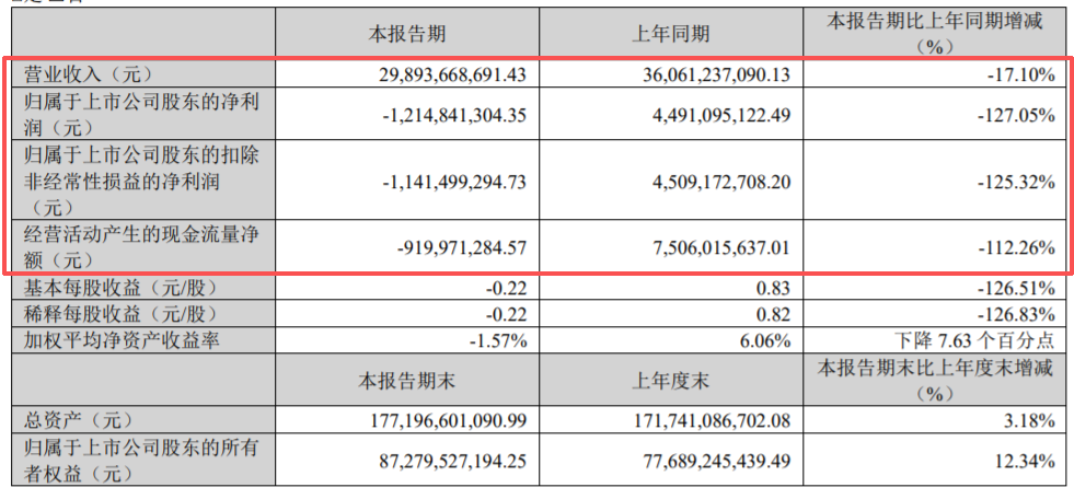 更吓人的是经营净现金流,直接从去年同期的75.06亿元变成了负现金流,-9.20亿!