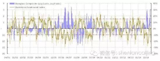 焦点图表 1: 我们短期的市场情绪模型认为市场短期内将有强势的向上冲刺。