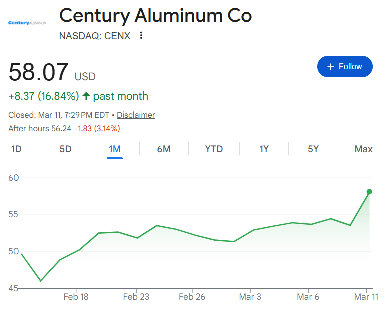 世纪铝业在美国运营着多家冶炼厂。推动铝价上涨的供应担忧同样对世纪铝业有利。例如,由于伊朗冲突威胁到霍尔木兹海峡的出口,3月2日铝期货价格上涨1.7%,创下数月新高。