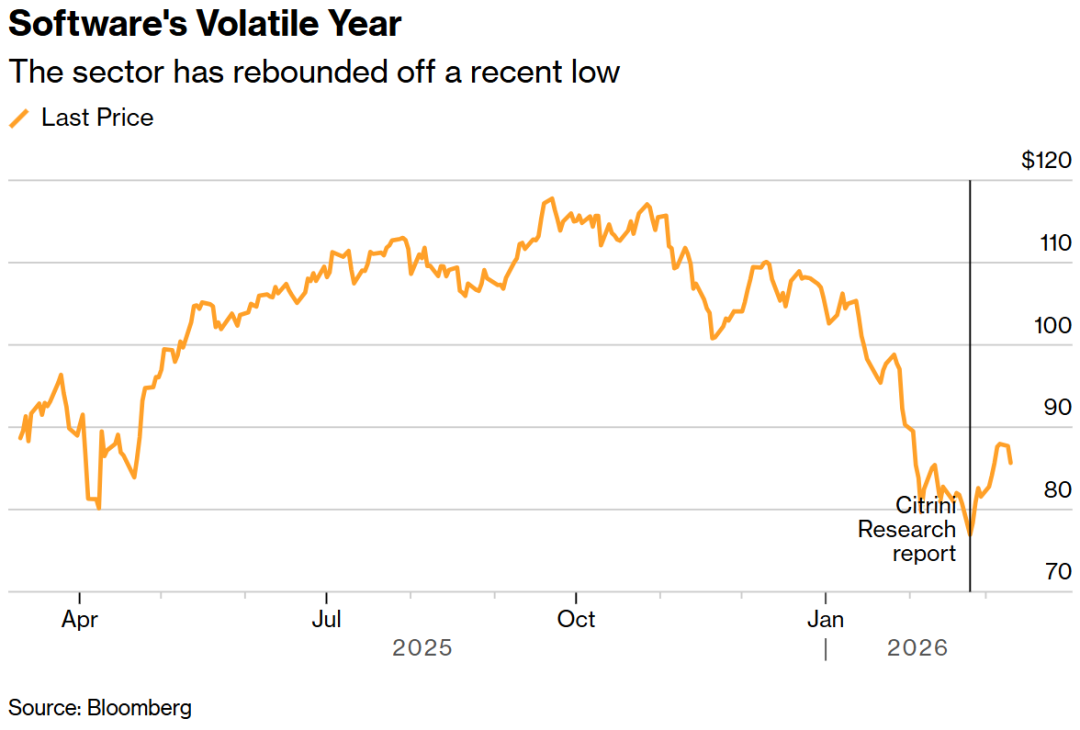 标准普尔 500 软件指数刚创下 5 月以来表现最好的一周。备受关注的 iShares 扩容科技软件板块ETF刚刚录得 11 个月来最强劲的单周涨幅。自 2 月 23 日以来,该指数已累计上涨 14%,而此前 Citrini Research 曾以对 AI 未来的反乌托邦式愿景引发了市场动荡。