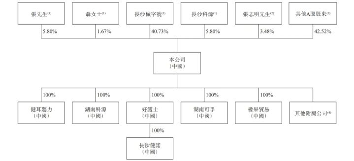 股权结构方面,张先生、聂女士(张先生配偶)、长沙械字号及长沙科源为公司控股股东,合共持有约54.00%投票权。
