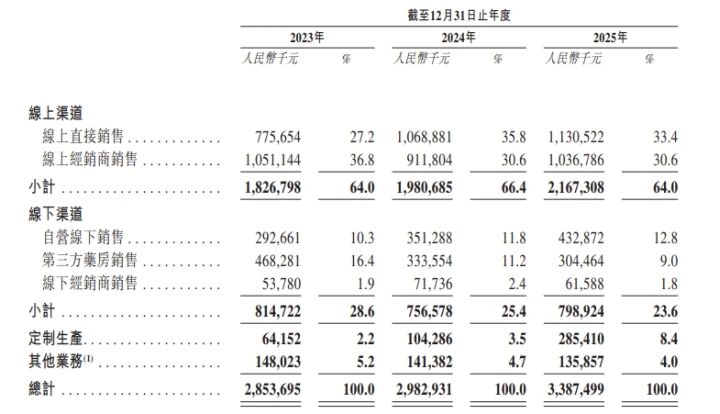 图4:可孚医疗各销售渠道收入明细(2023-2025年)