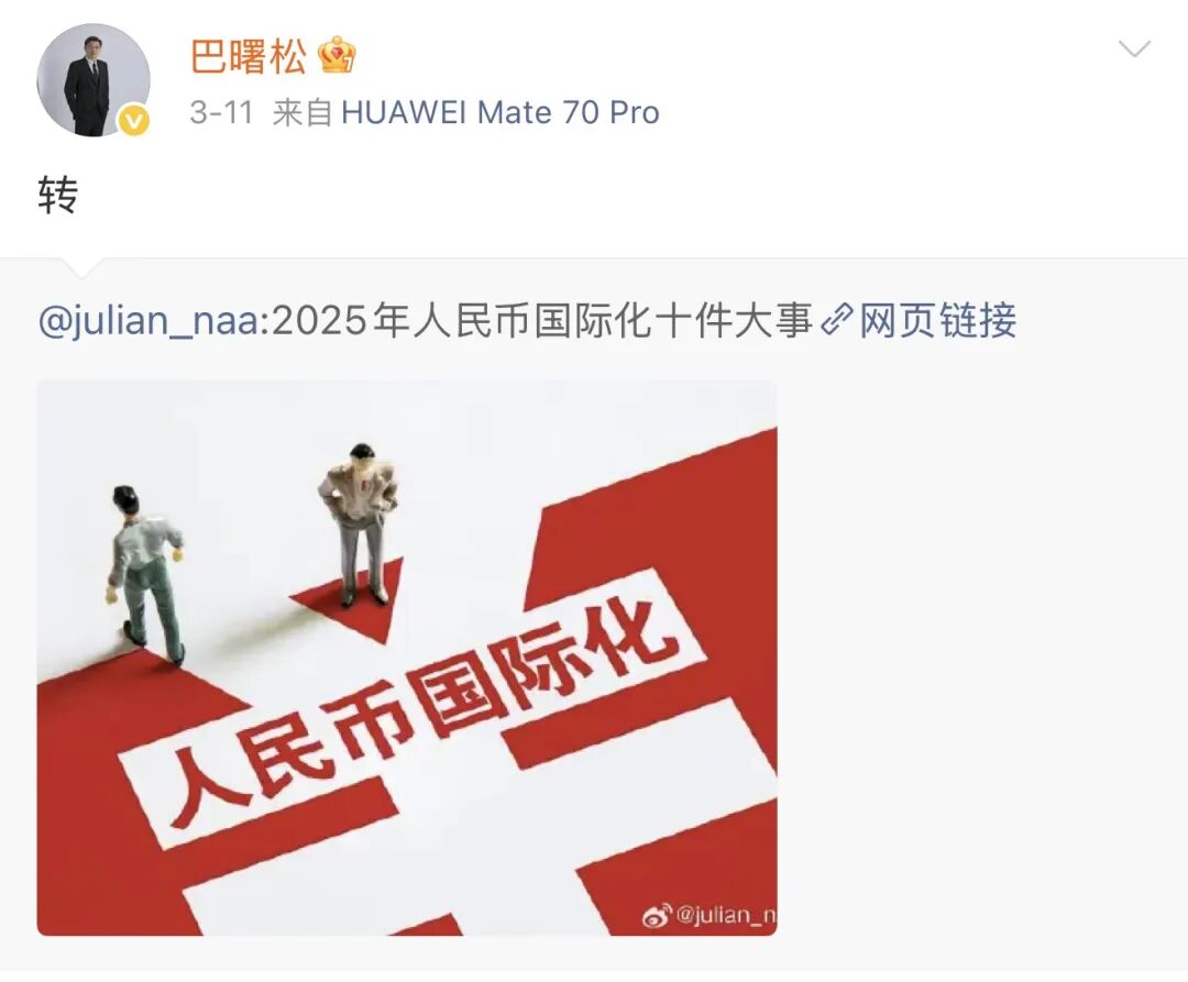 值得注意的是,经查询,巴曙松最新一条微博目前停留在3月11日。