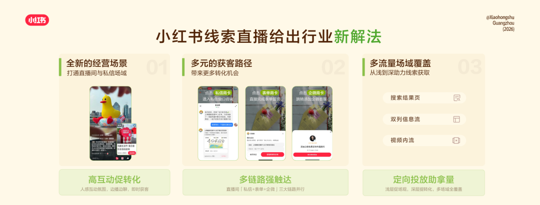 如果说小红书营销IP是房企深度链接人群、沟通需求的桥梁,那么线索直播则是直接促成转化的快车道。