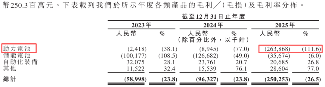 最主要的亏损在于动力电池,去年毛亏损2.64亿。