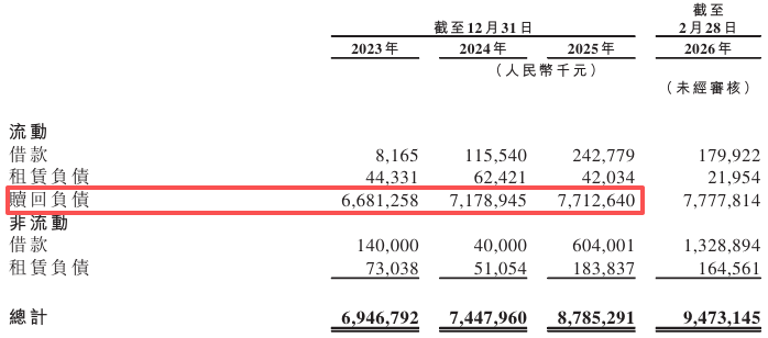 原因是赎回负债占了大头,高达77.13亿,占了流动负债的80%。