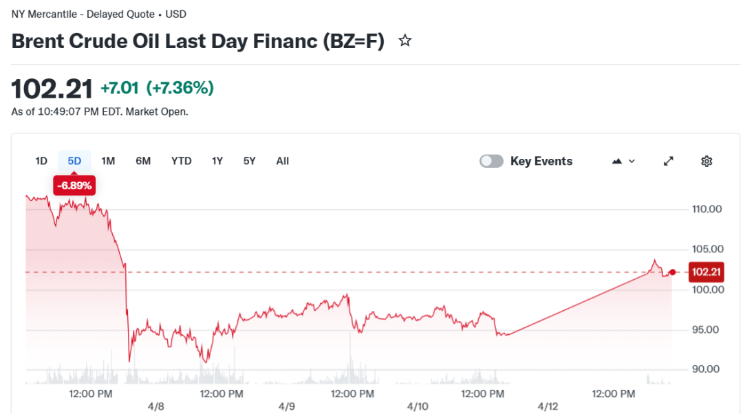 但周日市场对谈判未果迅速做出反应。欧洲天然气期货波动最为明显,一度飙升18%。美国原油基准西德克萨斯中质原油(CL=F)飙升超过8%,突破每桶104美元,而布伦特原油(BZ=F)上涨近8%,至每桶102.39美元,引发了人们对通胀压力再度上升以及可能拖累全球经济增长的担忧。