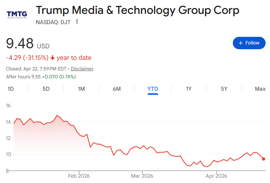 过去一年,由于特朗普媒体与科技公司难以吸引除美国总统粉丝以外的用户,其股价下跌了近三分之二。