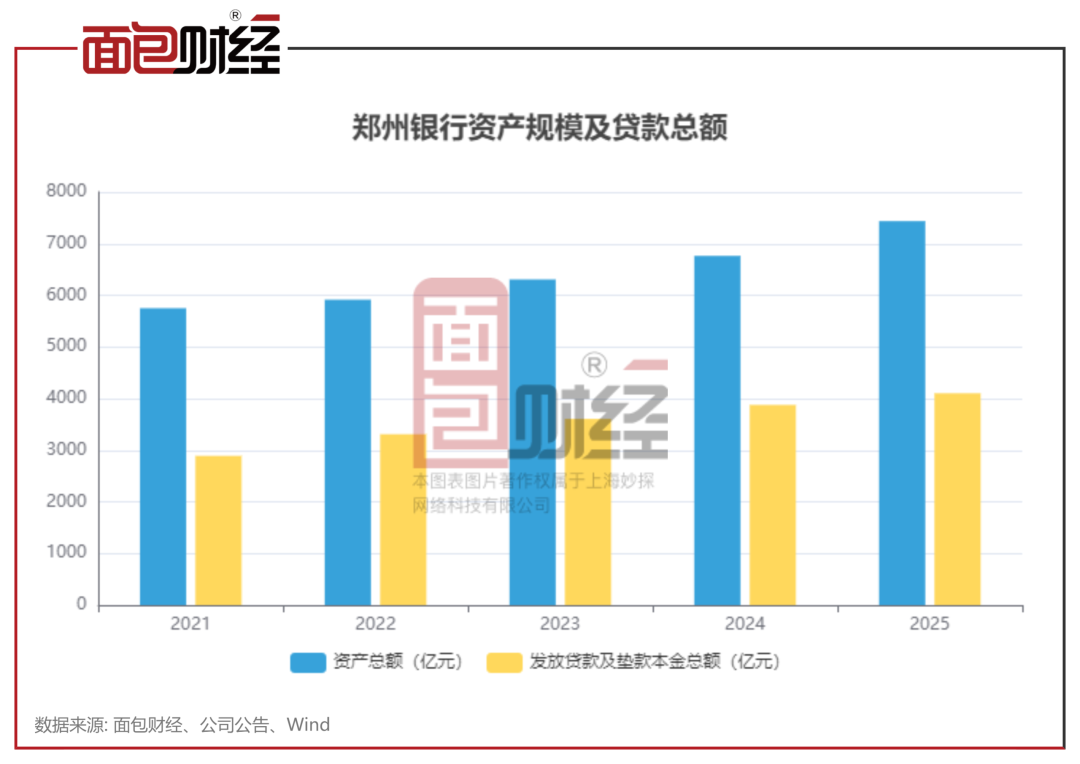 2025年,郑州银行资产规模稳步上升,报告期末资产总额达到7436.74亿元,较年初增长673.09亿元,增幅9.95%;发放贷款及垫款总额4102.64亿元,增幅5.82%;存款总额4630.75亿元,增幅14.47%。