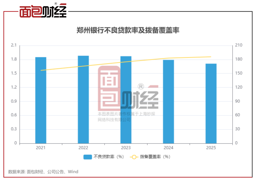数据显示,2025年,郑州银行的不良贷款率进一步下降至1.71%,较年初下降0.08个百分点;拨备覆盖率则上升至185.81%,抵御风险的能力持续增强。