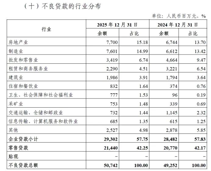 2025年末,光大银行不良贷款余额一举突破500亿大关,较上年末新增14.9亿元;不良贷款率微升至1.27%,较上年末上升0.02个百分点。