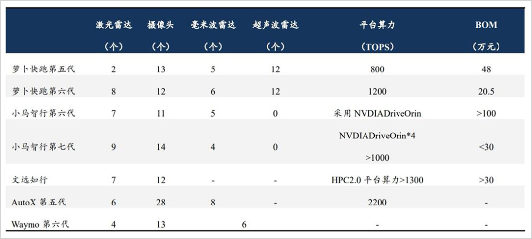 五年前,单台Robotaxi的整车成本超百万元,仅激光雷达的造价就高达近10万元。但在国产供应链与量产化推动下,激光雷达等硬件成本降了90%,目前头部企业新一代Robotaxi车型的BOM成本已经下探到30万元。