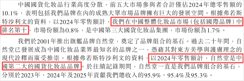 自然堂在中国整体化妆品市场(含国际品牌)排第10,在国货化妆品中能排到第2。
