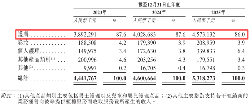 但自然堂“偏科”很严重,收入极大程度依赖护肤产品。