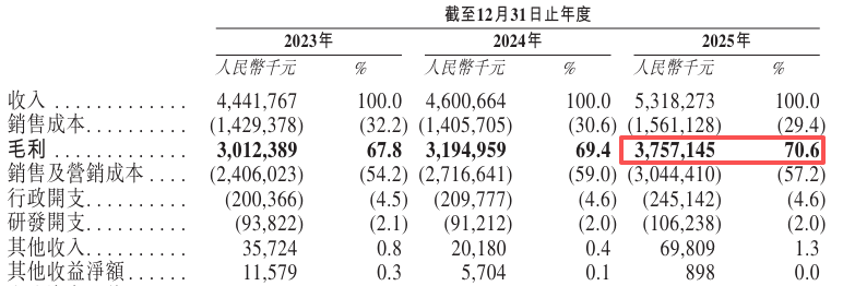 毛利率高达70.6%,毛利37.57亿。