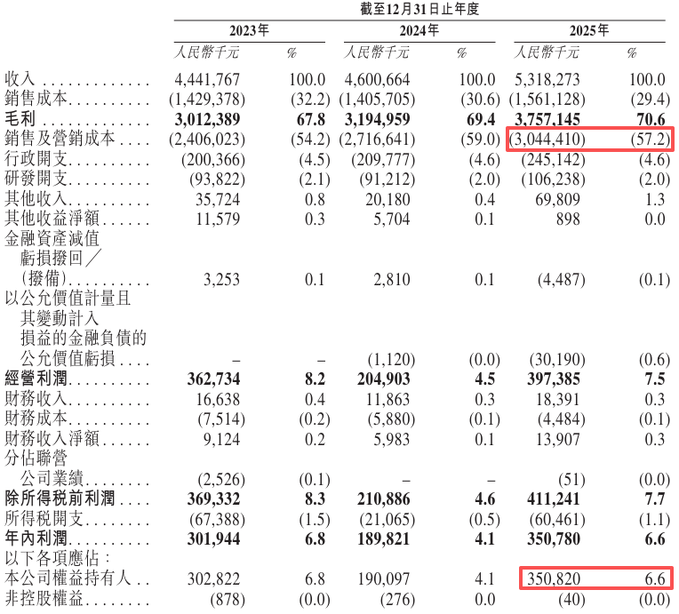 毛利率高达7成,但自然堂的净利润率只有6.6%,去年净赚3.51亿。