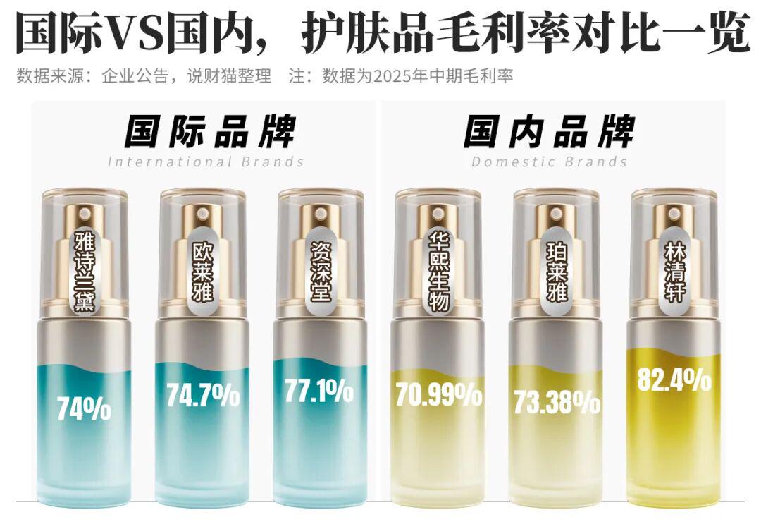 华熙、珀莱雅、林清轩的毛利率,都在自然堂之上。