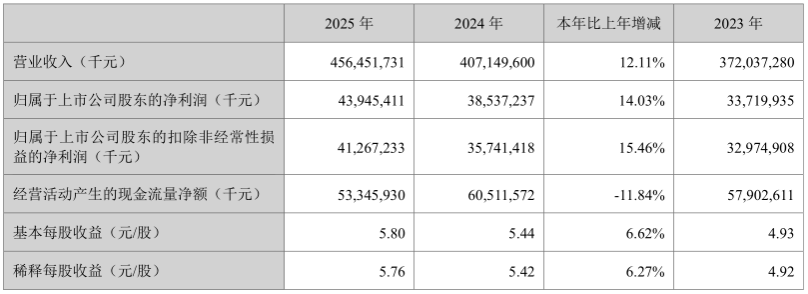 财报数据显示,2025年全年,美的集团实现营业总收入4585亿元,同比增长12.1%;归属于上市公司股东的净利润439.5亿元,同比上升14%,营收、净利润均创出历史新高。