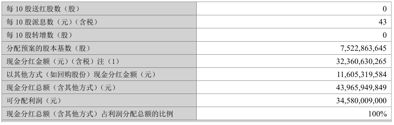 除了靓丽的业绩表现之外,美的集团的分红政策更加让人瞩目。据年报披露,2025年,美的集团拟每10股分红43元(含税)(其中中期每10股已分红5元(含税),年末拟每10股分红38元(含税)),全年分红总额达到324亿元。