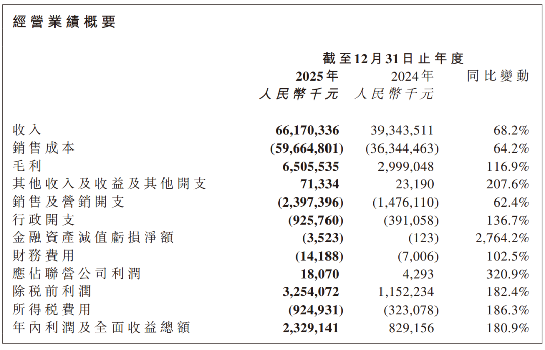 2025年,其营收661.7亿元,同比增长68.2%,而经调整净利润(剔除股份支付和上市开支)从9.13亿元飙升至26.92亿元,增幅高达194.9%。利润增速显著跑赢营收增速,标志着企业正在从粗放铺量跨入集约经营的新周期。