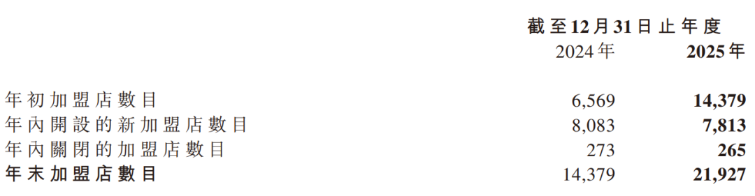 CFO王钰潼在业绩会上承认,同店压力源于前期过度追求开店速度和补贴竞争,经营能力的沉淀未能跑赢扩张的脚步。营收增速从2024年的282%骤降至2025年的68.2%,正是这一矛盾的显性化。依赖“加盟轻资产+门店加密”的扩张模式,正进入边际效应递减阶段。