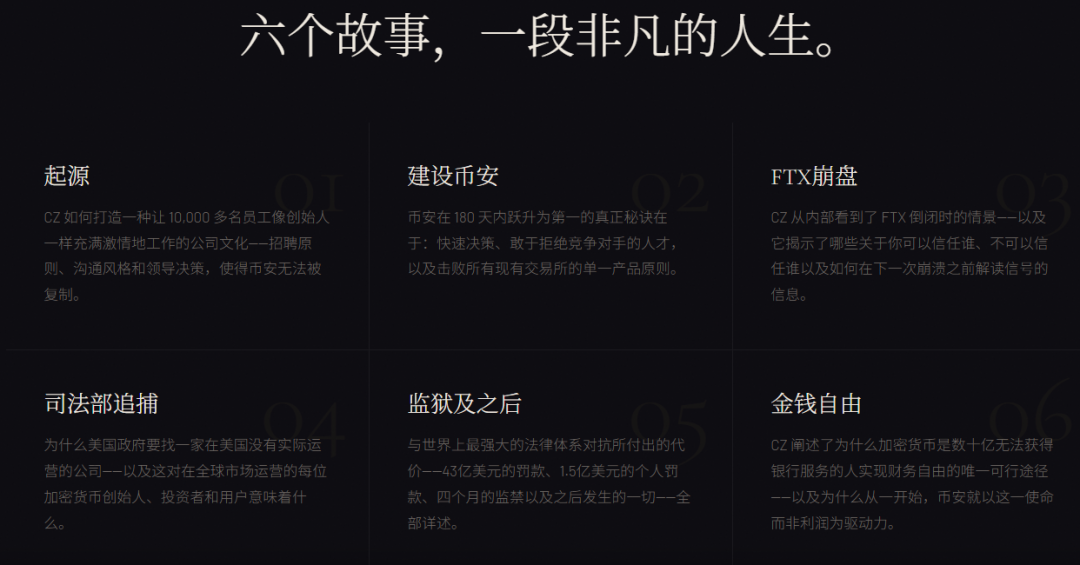 在网站上,赵长鹏特别强调“本书写于狱中”,并且声称“从中国农村的泥土地面,到打造全球最大的加密货币交易所”,以获取反差感。