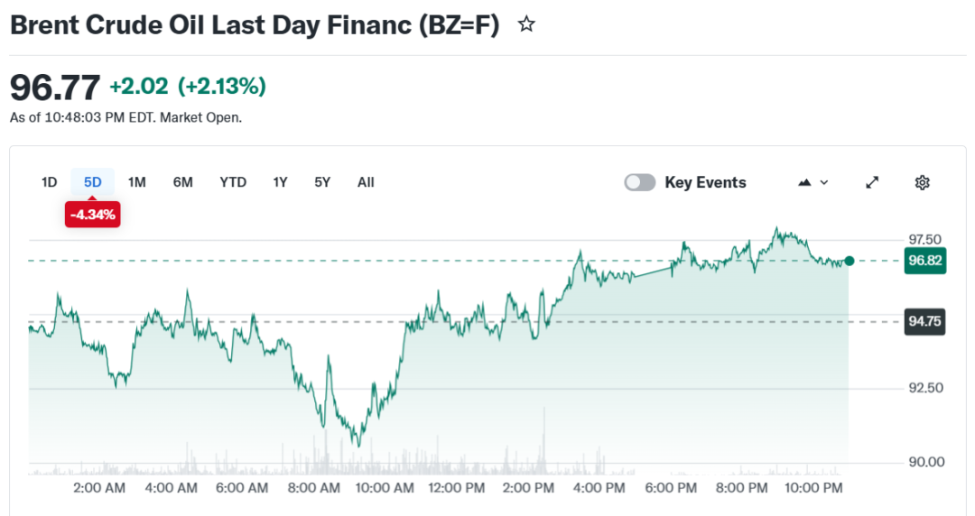 受海峡通行或重新受阻消息提振,布伦特原油(BZ=F)和西德克萨斯中质原油(CL=F )期货价格盘后分别上涨2.5%和2.8%。此前,周三国际油价一度暴跌超过13%,跌破每桶100美元 ,创下了2020年4月以来最大的单日跌幅。