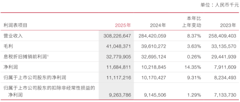 前不久,顺丰控股披露2025年度财报。数据显示,2025年全年,顺丰控股实现营业收入3082.3亿元,同比增长8.4%,这也是顺丰营收规模首次突破3000亿元大关;实现归母净利润111.2亿元,同比增长9.3%;扣非净利润为92.64亿元,同比微增1.29%。其中,2025年第四季度,顺丰控股实现营收829.7亿元,同比增长7.0%,实现归母净利润28.1亿元,同比增长10.0%。