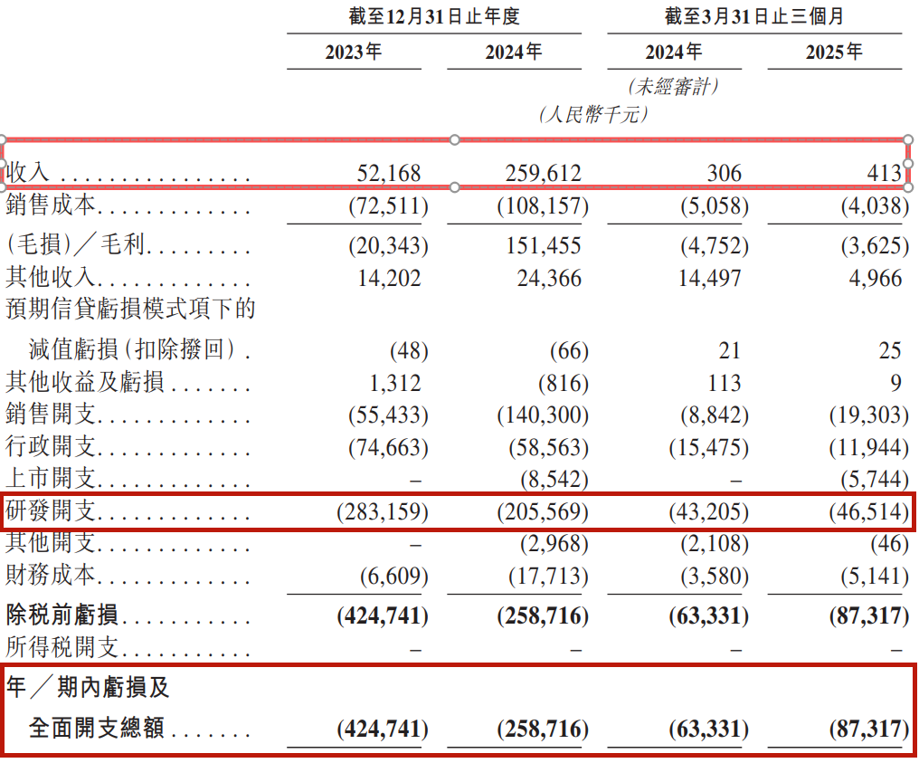 同期,其录得研发开支分别为2.83亿元、2.06亿元和4651.4万元,净亏损则分别达到4.25亿元、2.59亿元和8731.7万元。