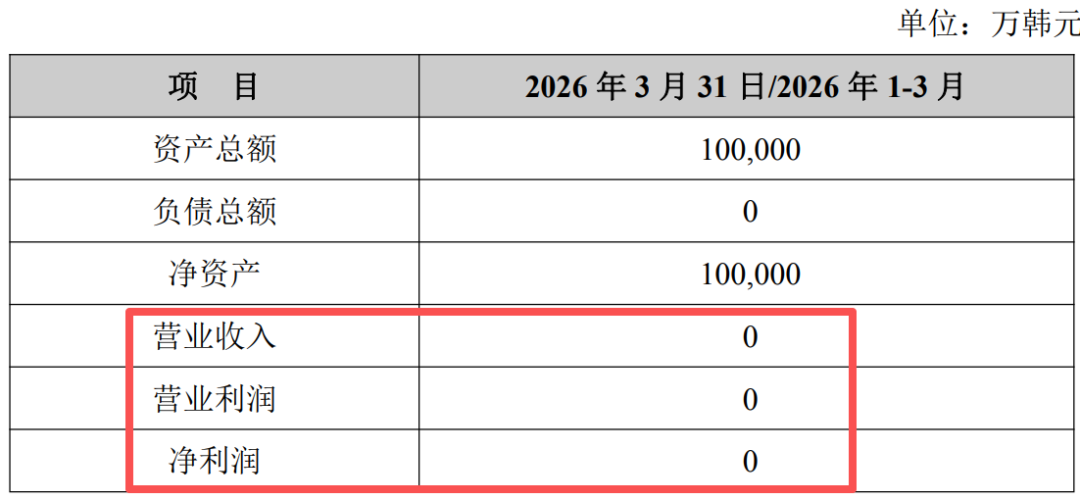 仔细看,拟收购的这家韩国公司,营收、净利润均为0,成立日期也很新,2026 年 2 月11 日。相当于用180万买一个零收入、刚成立的公司来“撑场面”。