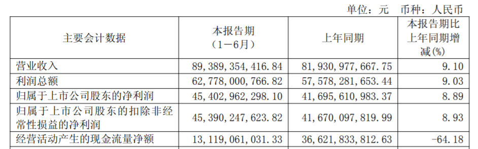 2025年上半年,茅台的营收和利润还是增长的,分别增长了9.10%和8.89%。