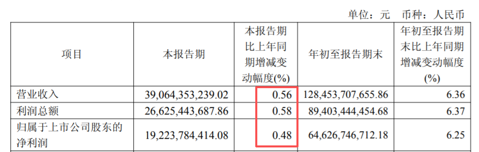 2025年第三季度,茅台业绩开始变脸,只微增0.56%和0.48%,但至少还是正增长。