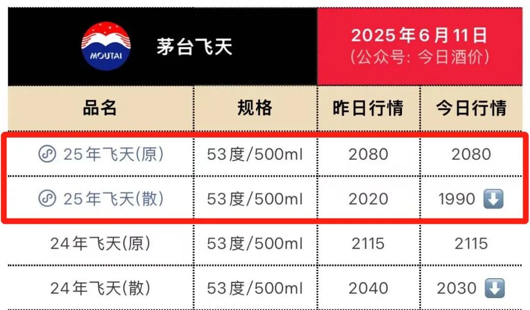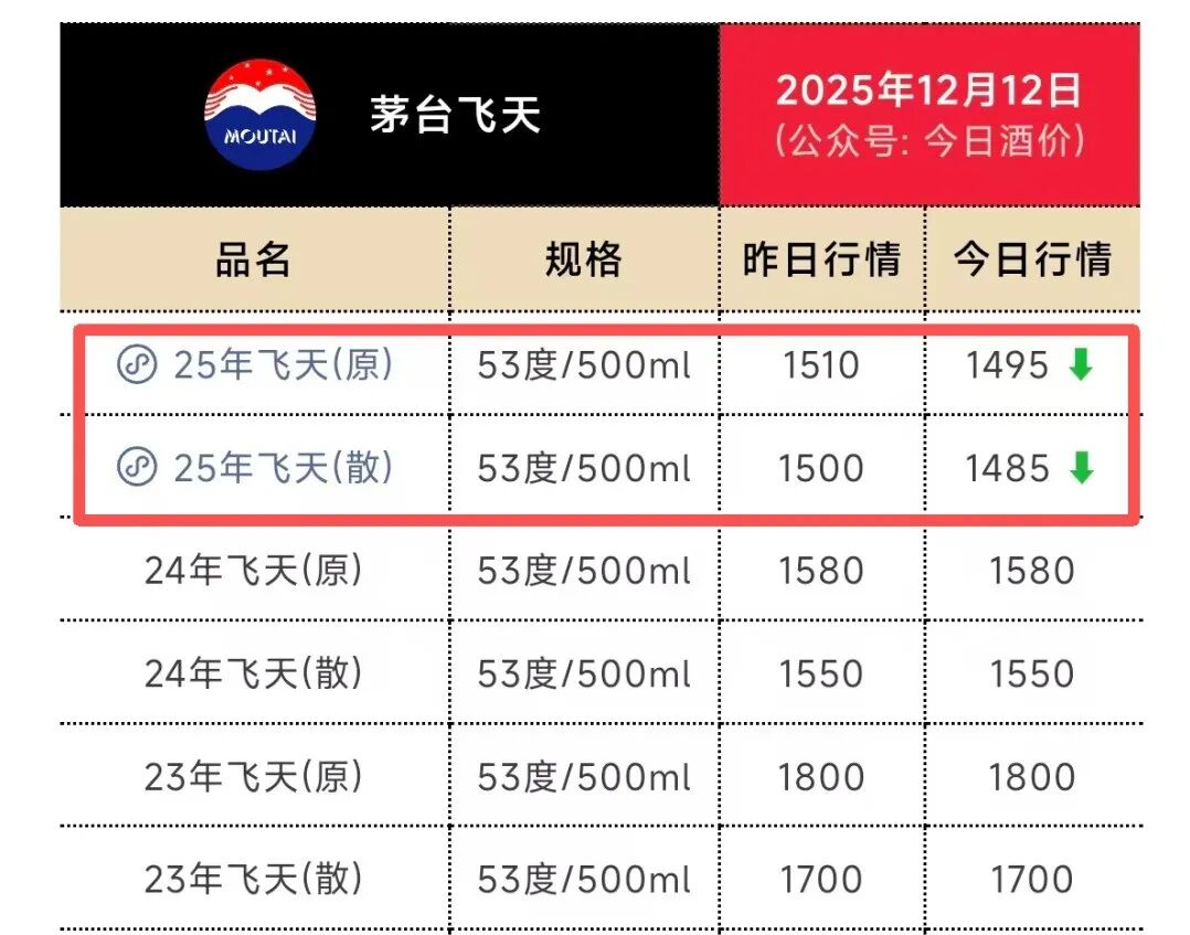 猫姐看了一下“今日酒价”的最新批发参考价: