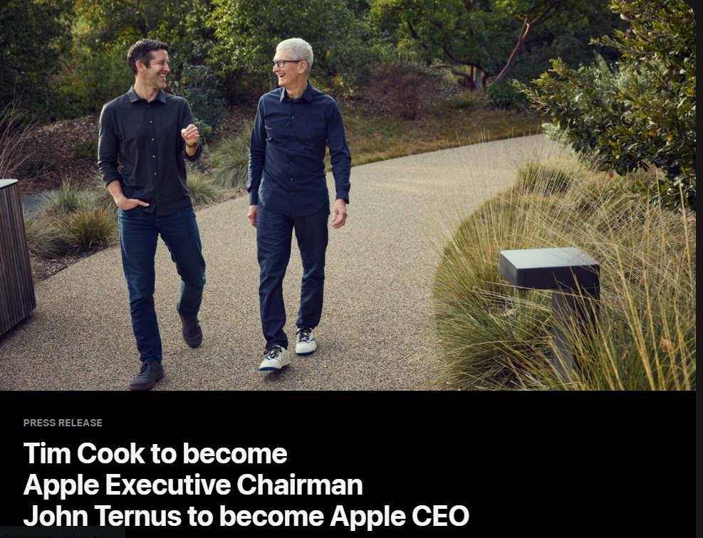 库克离任的时间安排得恰到好处,届时苹果公司9月份的大型发布会将由特纳斯负责。