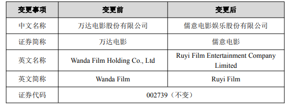 今年3月和4月,万达投资、万达电影接连更名,改成“北京儒意投资”“儒意电影”,今天更换证券名是意料之中。