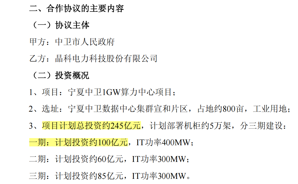 这些案例说明,晶科科技讲的“电力+算力”故事,在商业逻辑上并非空中楼阁。当算力越来越耗电,电力资源本身,就会成为数据中心估值的一部分。
