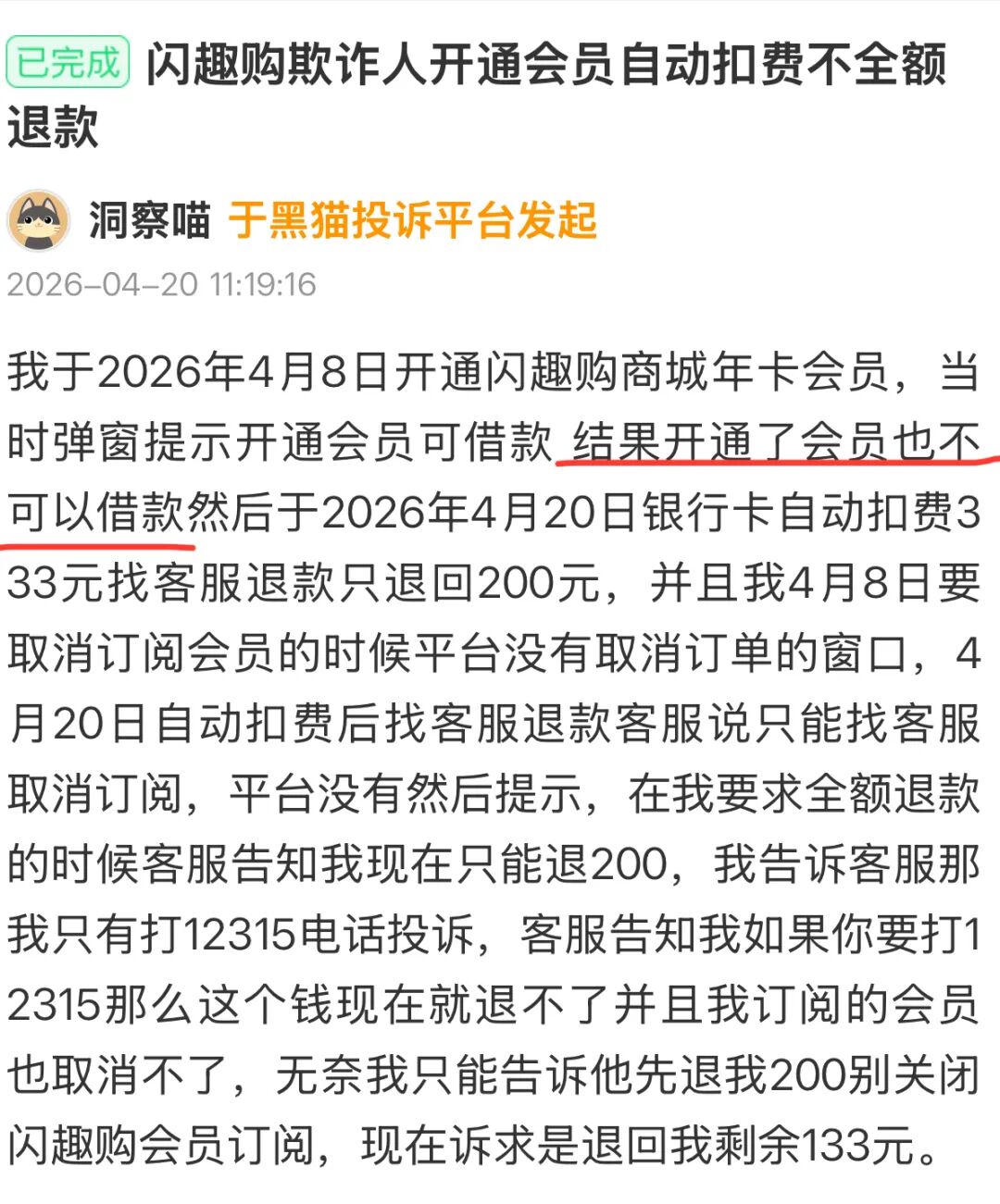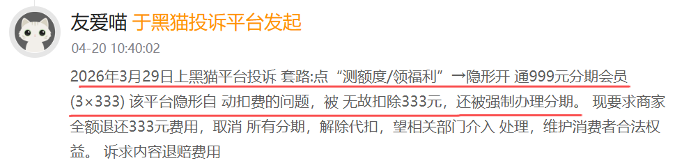 比如,一名消费者于4月20日中午投诉称,其于4月7日在某平台申请借款5000元,订单状态为“正常还款中”。