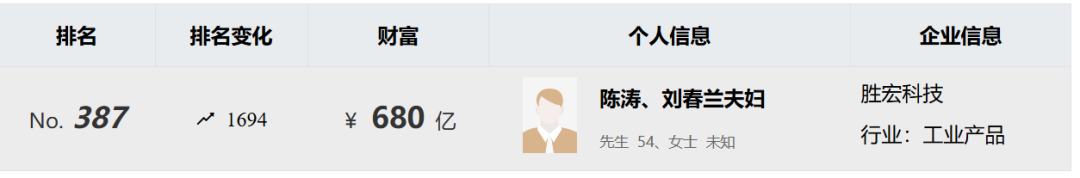 而据今年3月发布的《2026胡润全球富豪榜》,陈涛、刘春兰夫妇的身家已涨至680亿元。