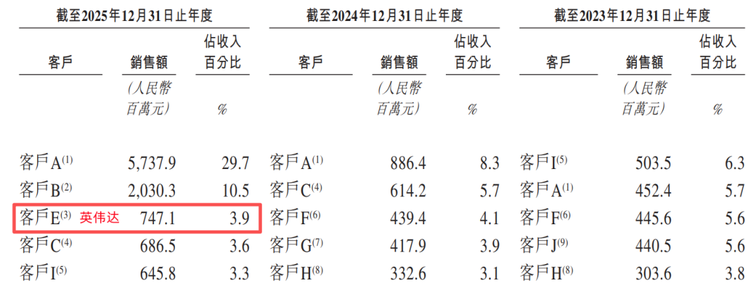 2025年,胜宏科技来自第三大客户英伟达的销售额约为7.47亿元,占公司收入的3.9%。