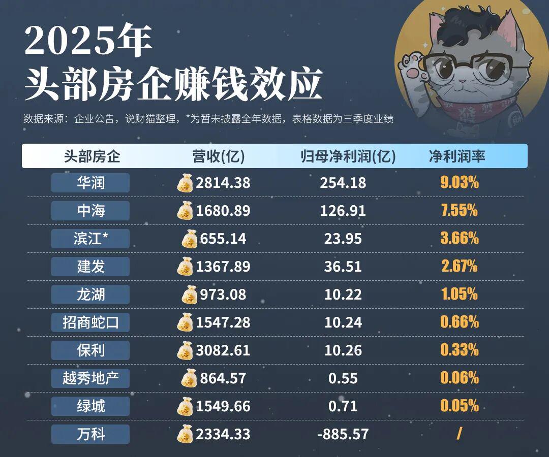 以前都说卖房暴利,但现在一看净利润率: